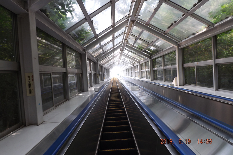 近くにある東洋最長(らしい)エスカレーター。有料だけど頂上展望台からの景色もなかなか。