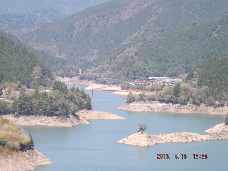「魚梁瀬の遠景。今はのどかな避暑地となっているが、旧村はダム湖の底である。」