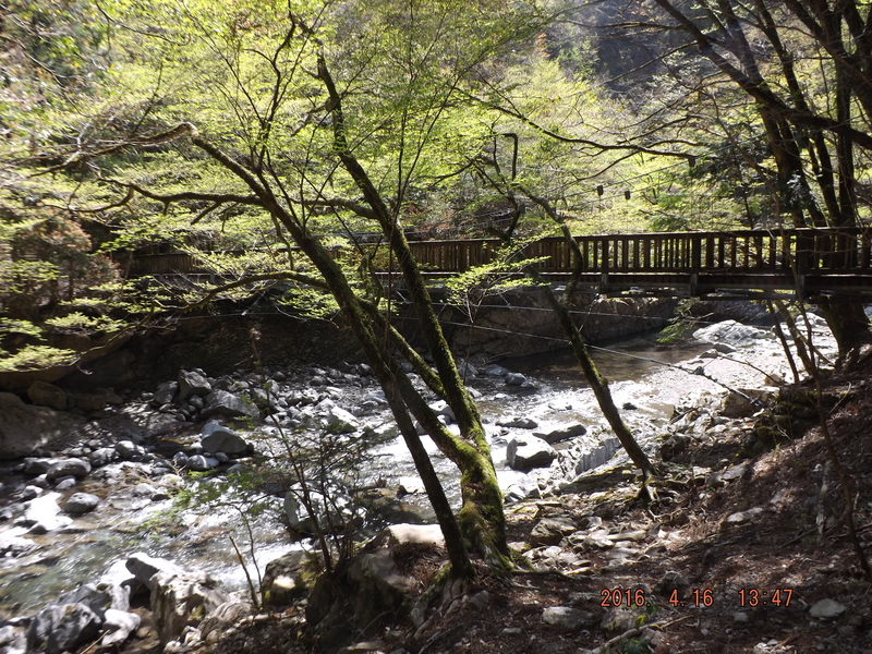 「魚梁瀬原生林の登山口 川も以上に澄んでいる。」